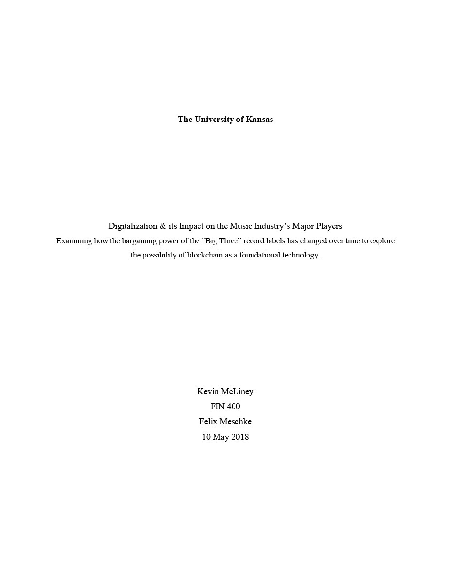 Undergraduate Capstone Project (May 2018) University of Kansas, Bachelor’s in Finance
